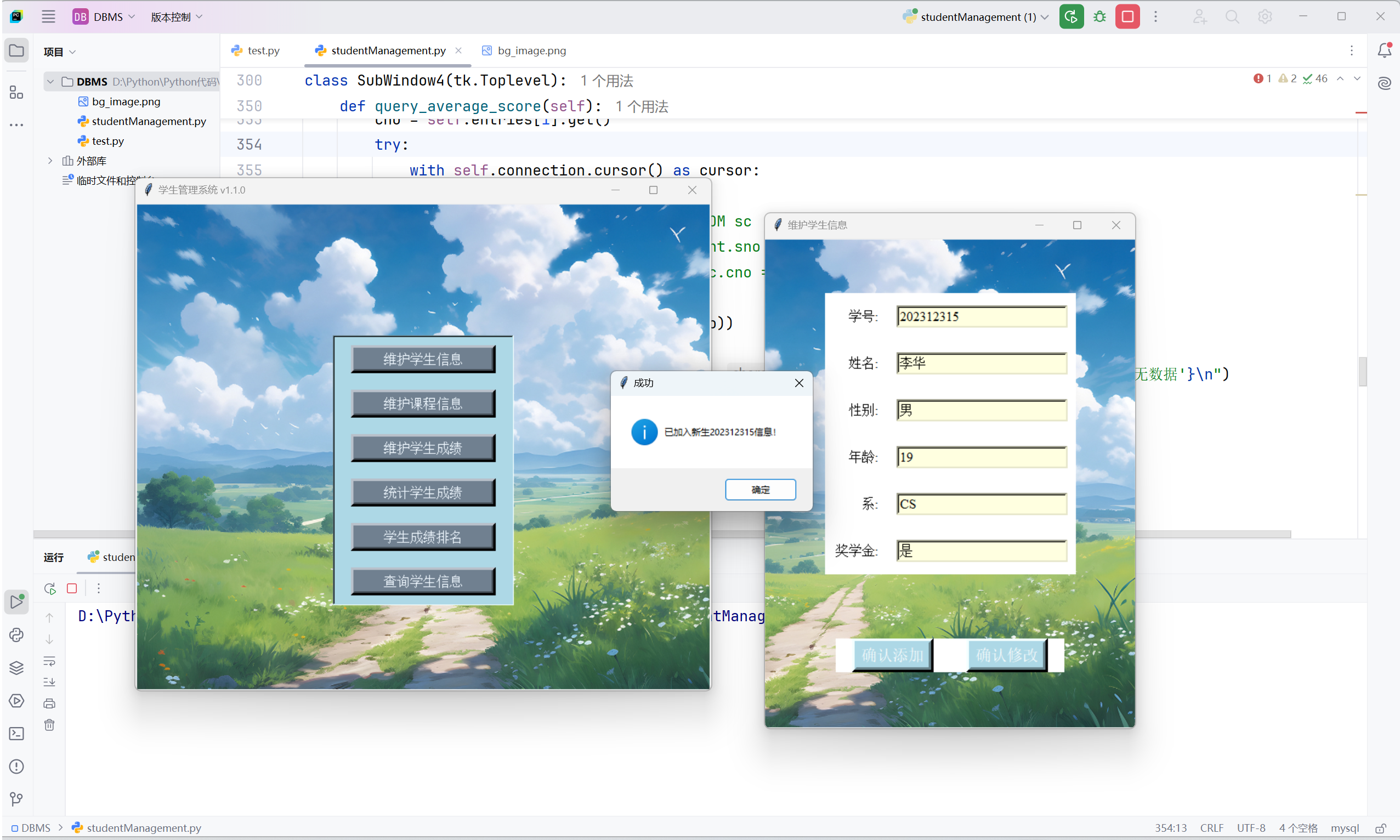 f"学号: {sno}\n姓名: {sname}\n性别: {ssex}\n年龄: {sage}\n系别: {sdept}\n奖学金:{scholarship}\n"