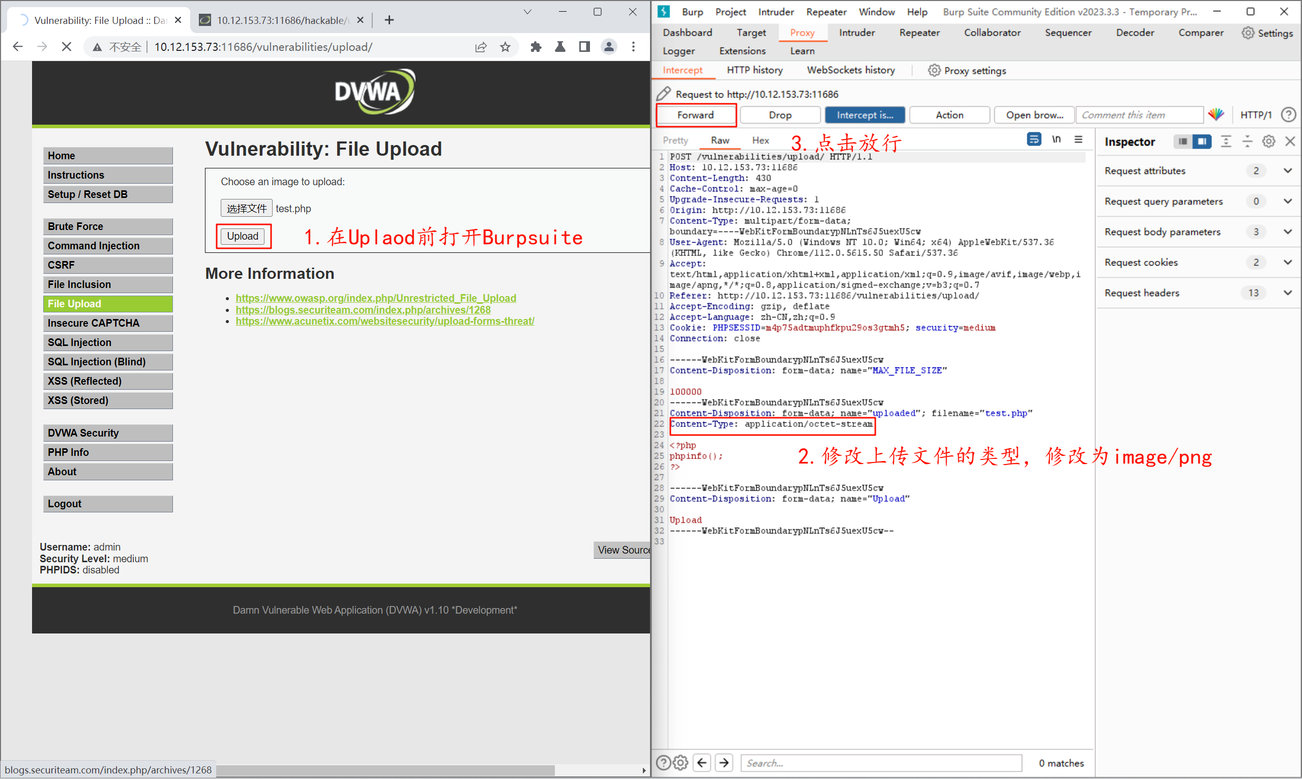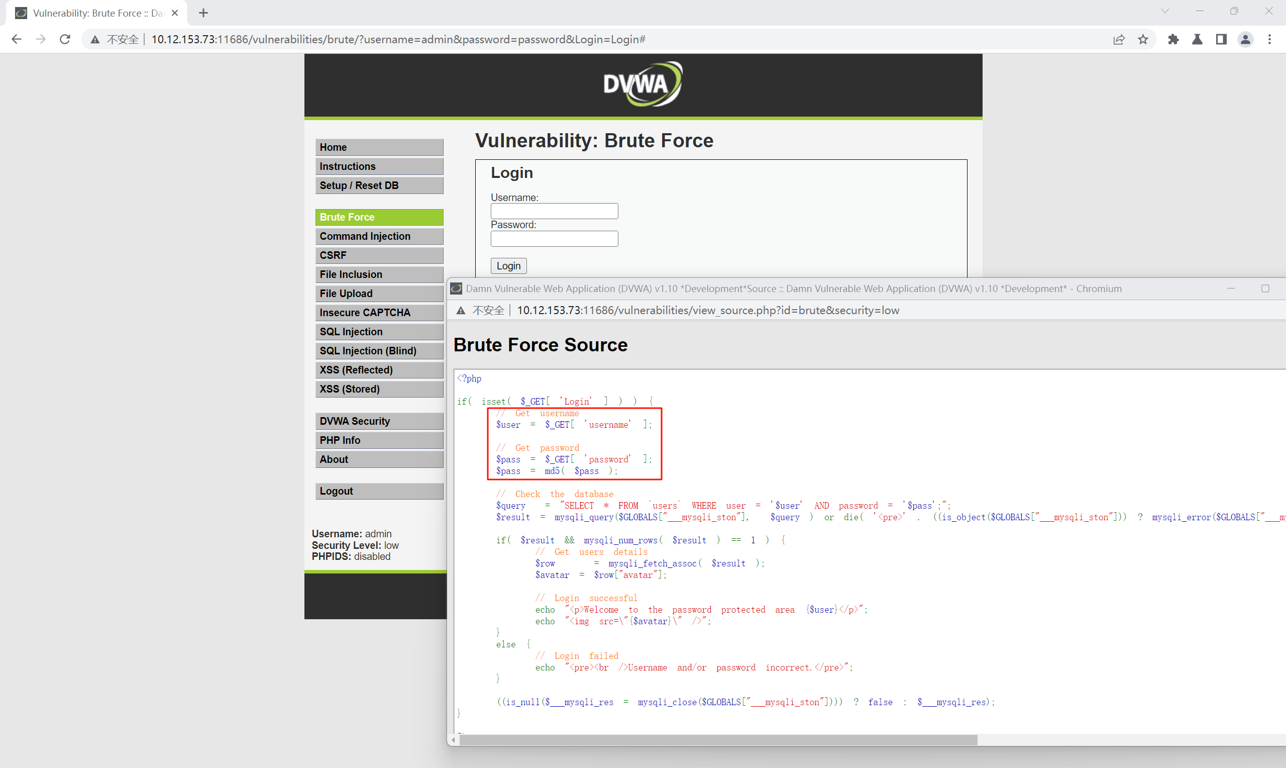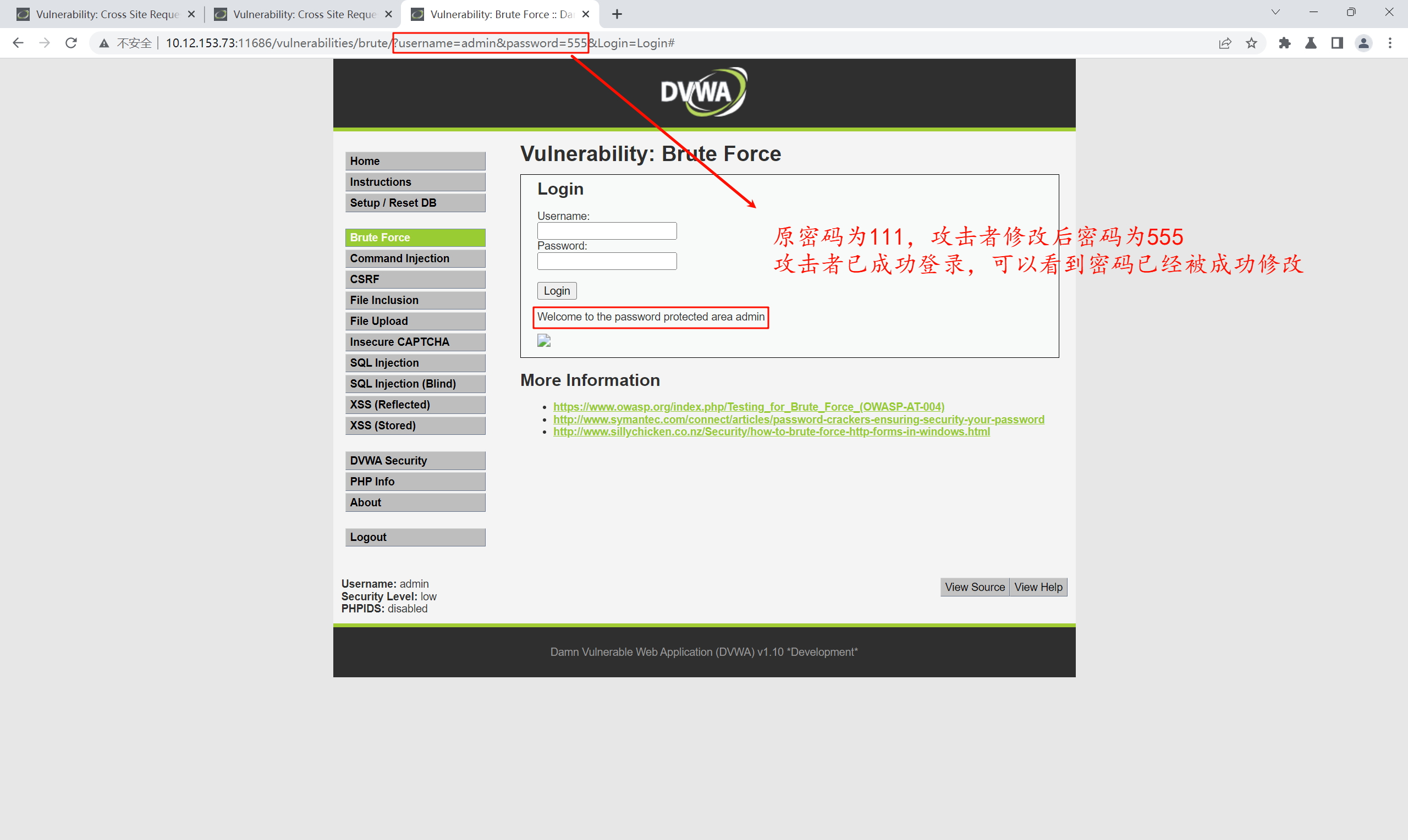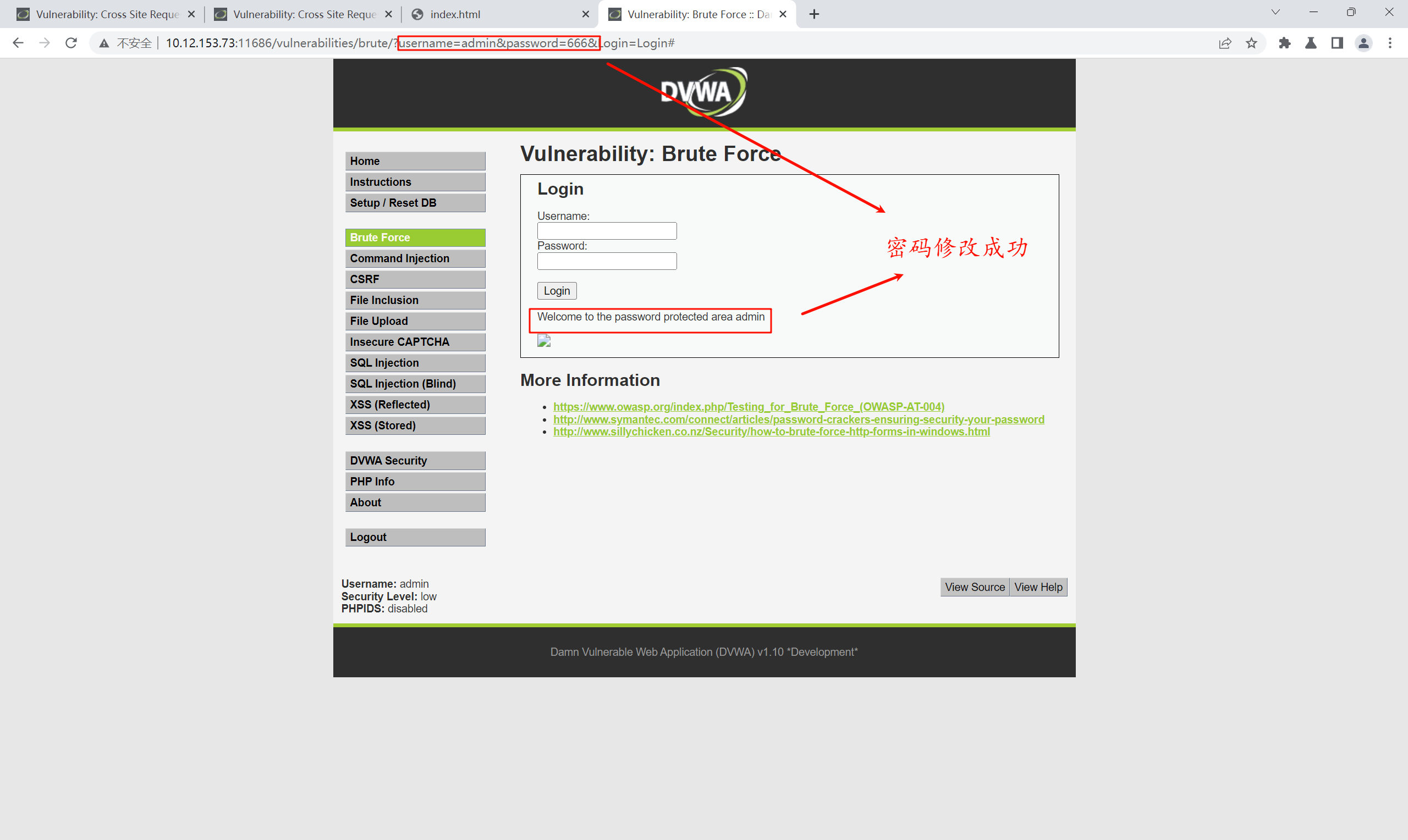 在跨站请求伪造环节,我尝试着将page后的参数改为file4.php,可是并没有发现隐藏文件,多次刷新也没有结果,周围同学部分成功、部分结果和我一样找不到文件。后来在QQ群聊中有同学提示密码的等级要修改成low,最终成功解决问题。