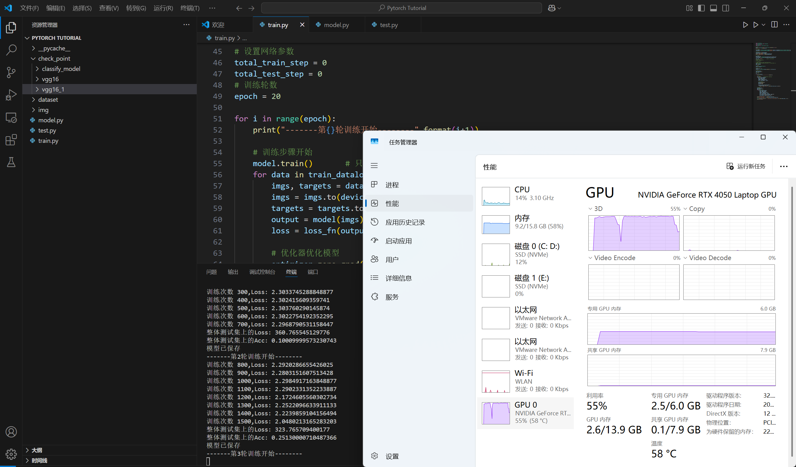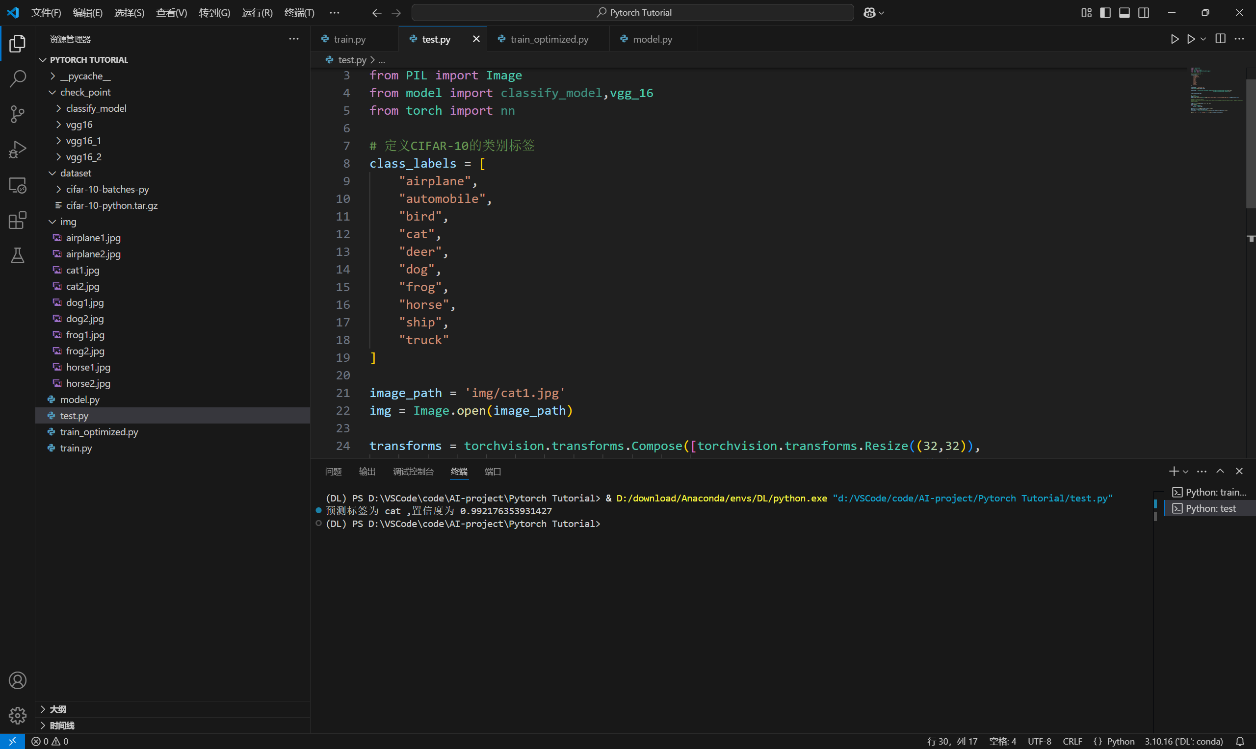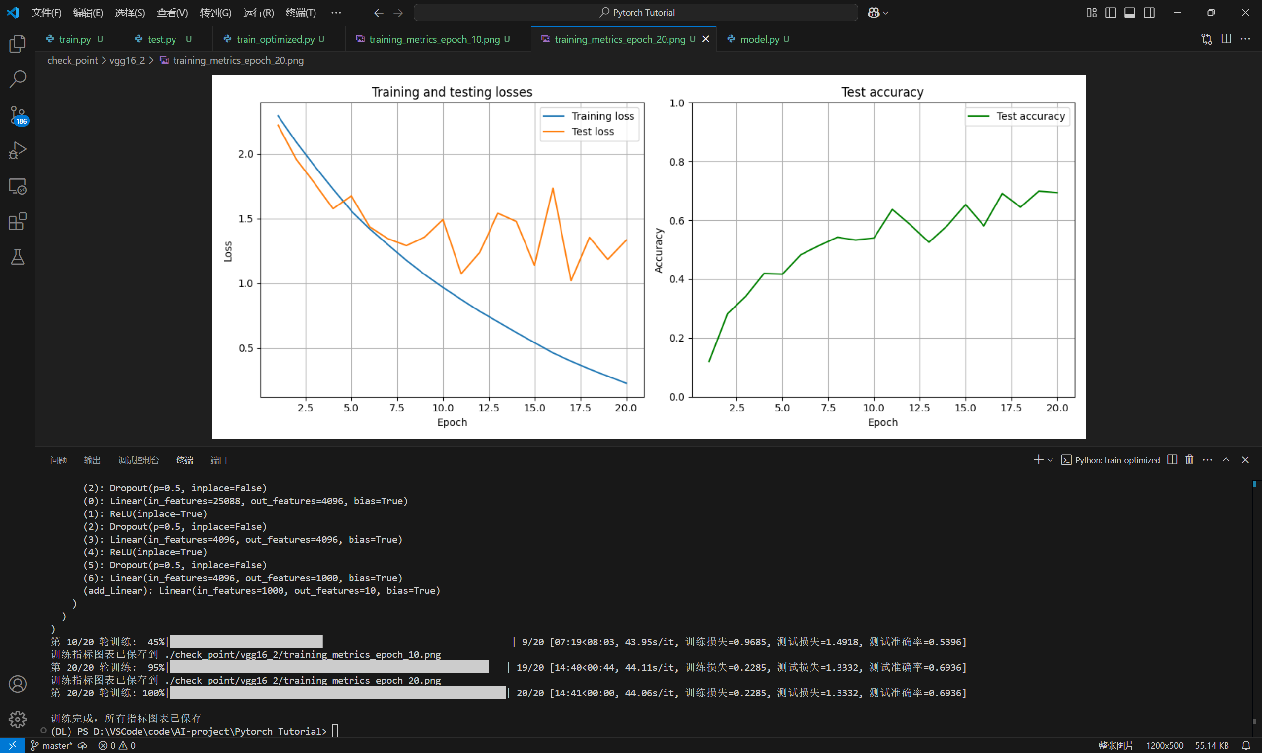 这是训练代码,基本流程为准备数据集->加载数据集->构建神经网络->定义损失函数->定义优化器->开始训练1